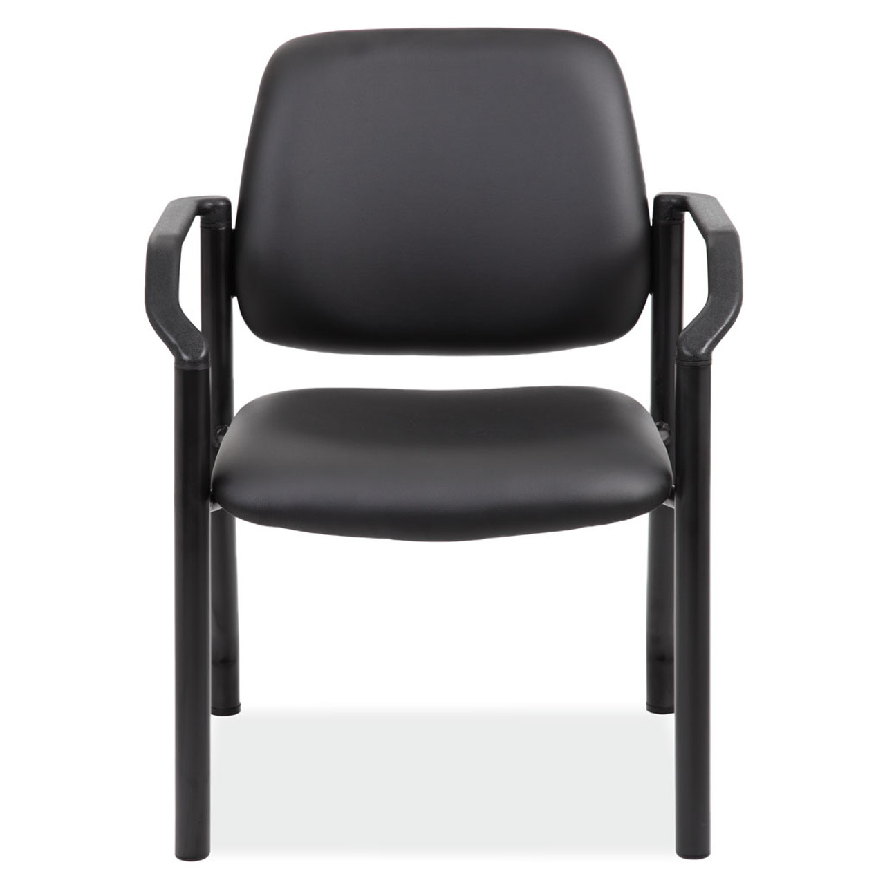 This Big & Tall guest chair comes with contoured arm rests and is rated at 300 lbs. It is covered in a gray antimicrobial vinyl with a waterfall seat design meant to prevent leg fatigue in longer sitting periods. Constructed with a steel frame and black tubular legs featuring a wall saver design and self leveling back legs, this guest chair by a great addition to any lobby or medical setting.