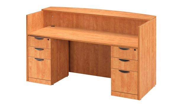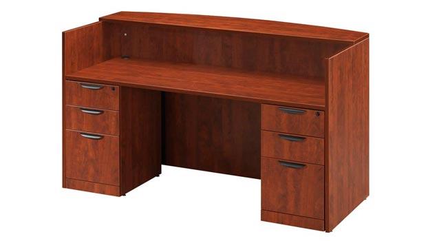 Overall Dimensions: 72″W W x 36″D x 42’H Walnut Laminate Reception Desk