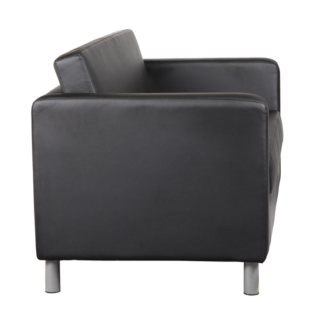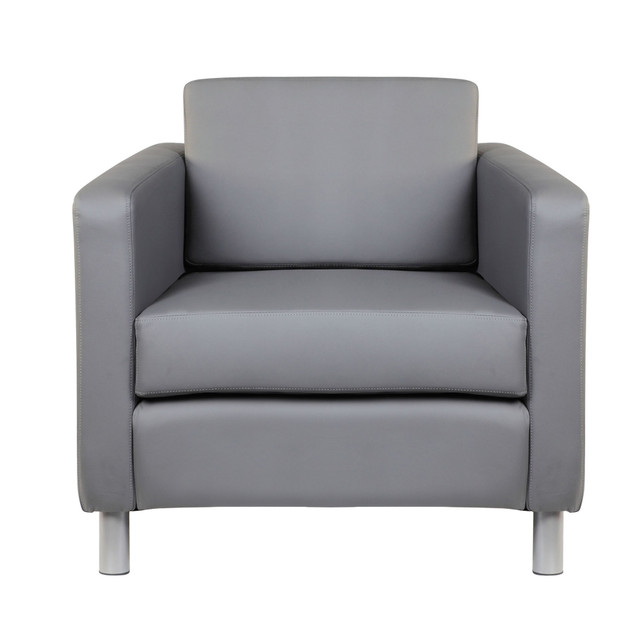 This contemporary designed club chair comes with ultra soft, durable and breathable CaressoftPlus gray upholstery. This club chair is constructed with heavy duty metal legs that are finished in an attractive silver powdercoat. This club chair features a single piece cushion design.